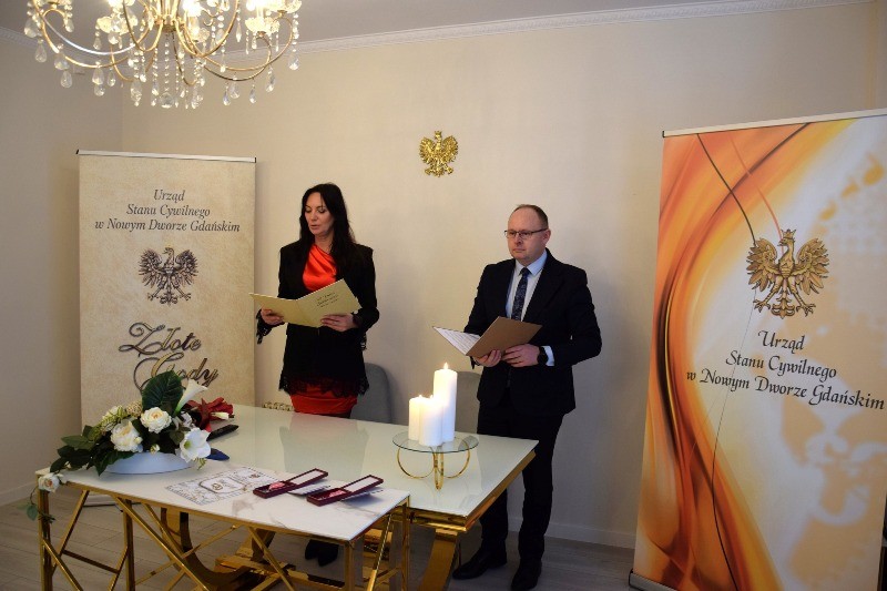 Uroczystego wręczenia odznaczeń dokonał Zastępca Burmistrza Nowego Dworu Gdańskiego Rafał Kubacki. Gratulacje oraz życzenia Jubilatom przekazała również Kierownik Urzędu Stanu Cywilnego Anna Rachwał, a także członkowie rodziny.