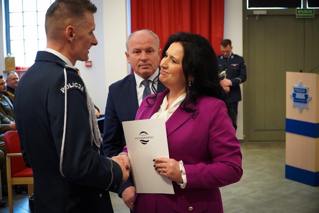 Podczas ceremonii insp. Alina Majchrzak podziękowała insp. Dariuszowi Zelerowi za lata służby, profesjonalizm oraz zaangażowanie w budowanie poczucia bezpieczeństwa na terenie powiatu nowodworskiego. Podkreśliła jego wkład w rozwój jednostki oraz współpracę z lokalnym samorządem i instytucjami.