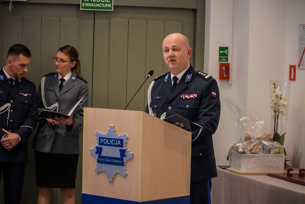 Podczas uroczystości oficjalnie powierzone zostały obowiązki Komendanta Powiatowego Policji w Nowym Dworze Gdańskim insp. Pawłowi Mirysowi. Dotychczas pełnił on funkcję Zastępcy Dowódcy Oddziału Prewencji Policji w Gdańsku, zdobywając doświadczenie w zarządzaniu oraz działaniach operacyjnych.